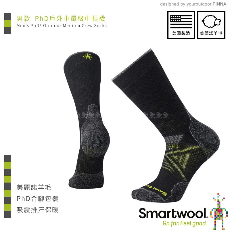 【SmartWool 美國 男 PhD戶外中量級中長襪《黑色》】SW001071/排汗襪/戶外襪/機能襪/排汗/悠遊山水