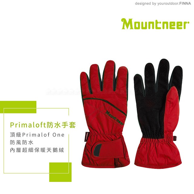 【Mountneer 山林 Primaloft防水手套《紅/深灰》】12G01/保暖手套/騎車/防水手套/賞雪/悠遊山水