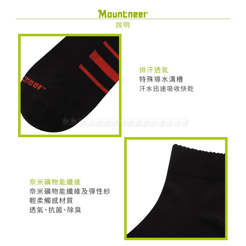 【Mountneer 山林 奈米礦物能透氣短襪《黑磚紅》】11U01/透氣襪/運動襪/排汗襪/戶外襪/機能襪//悠遊山水