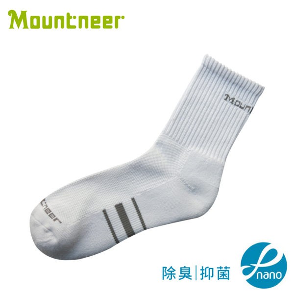【Mountneer 山林 奈米礦物能氣墊長襪《白》】12U06/透氣襪/運動襪/排汗襪/戶外襪/機能襪/健行/悠遊山水