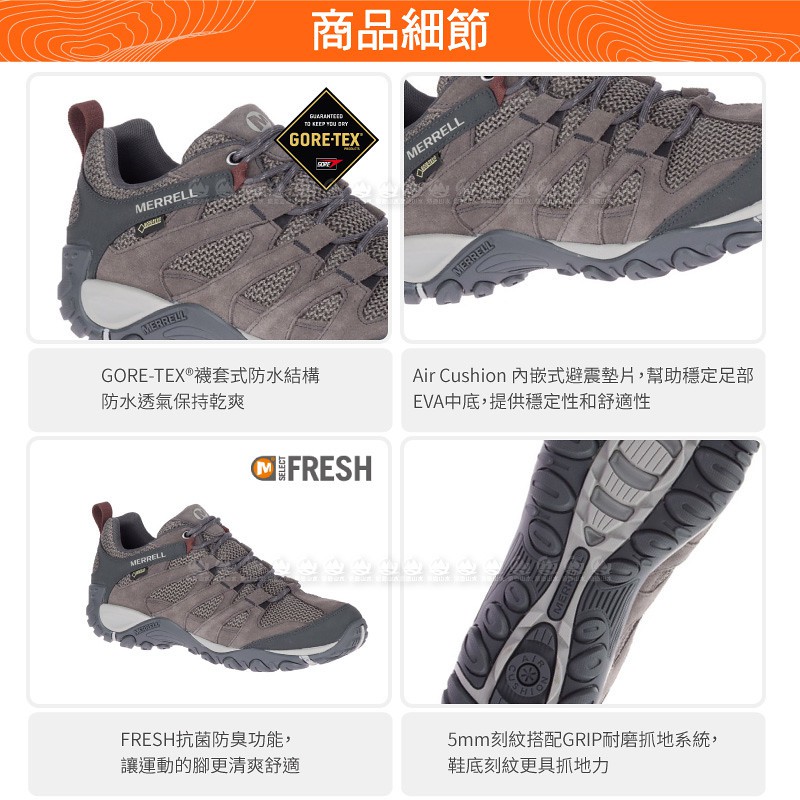 MERRELL 美國 男 ALVERSTONE GORE-TEX多功能健行鞋《灰》/ML99685/健走鞋/悠遊山水