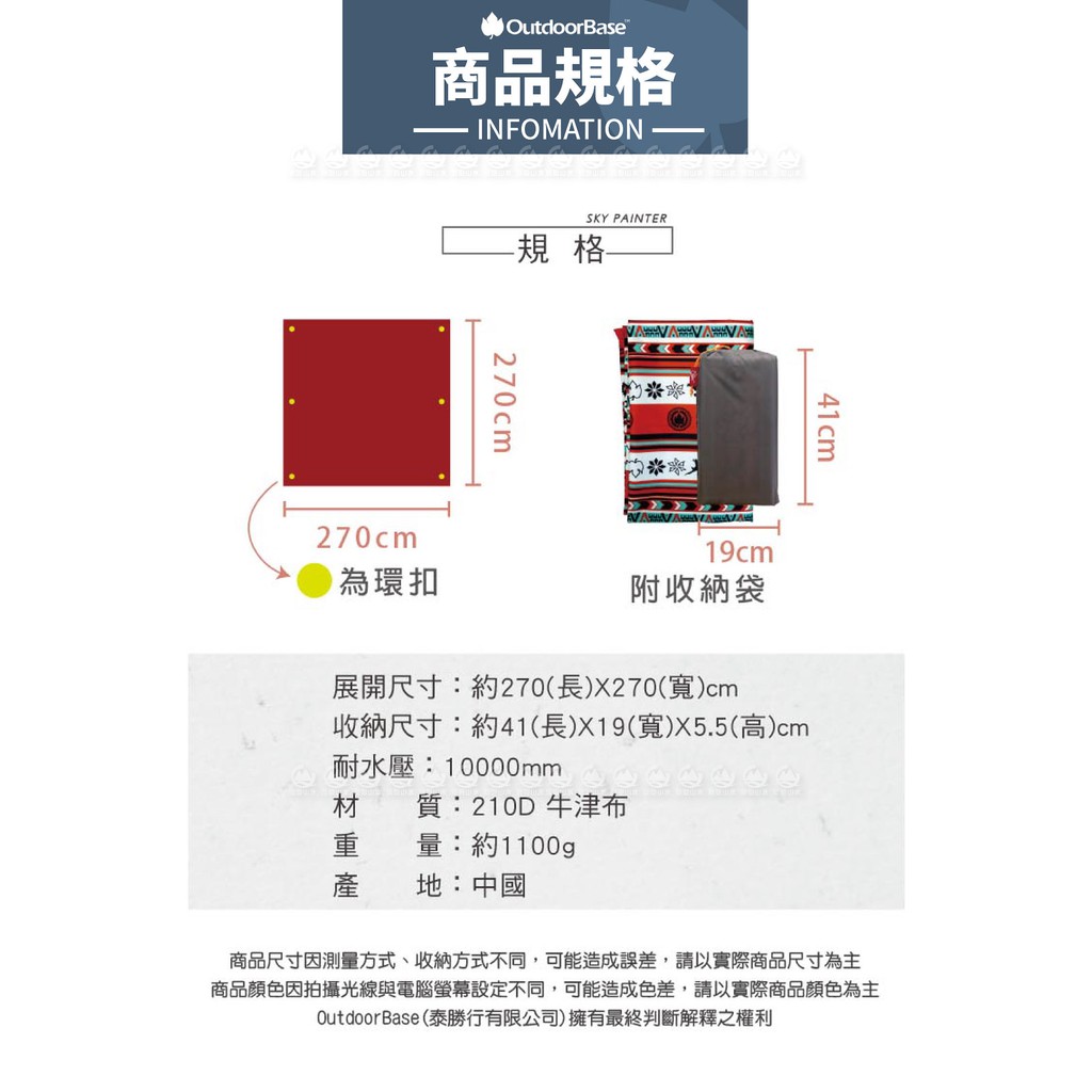 【OutdoorBase 彩繪天空六人帳(270x270cm)專用地布】21683/地墊/睡墊/野餐墊/地布//悠遊山水
