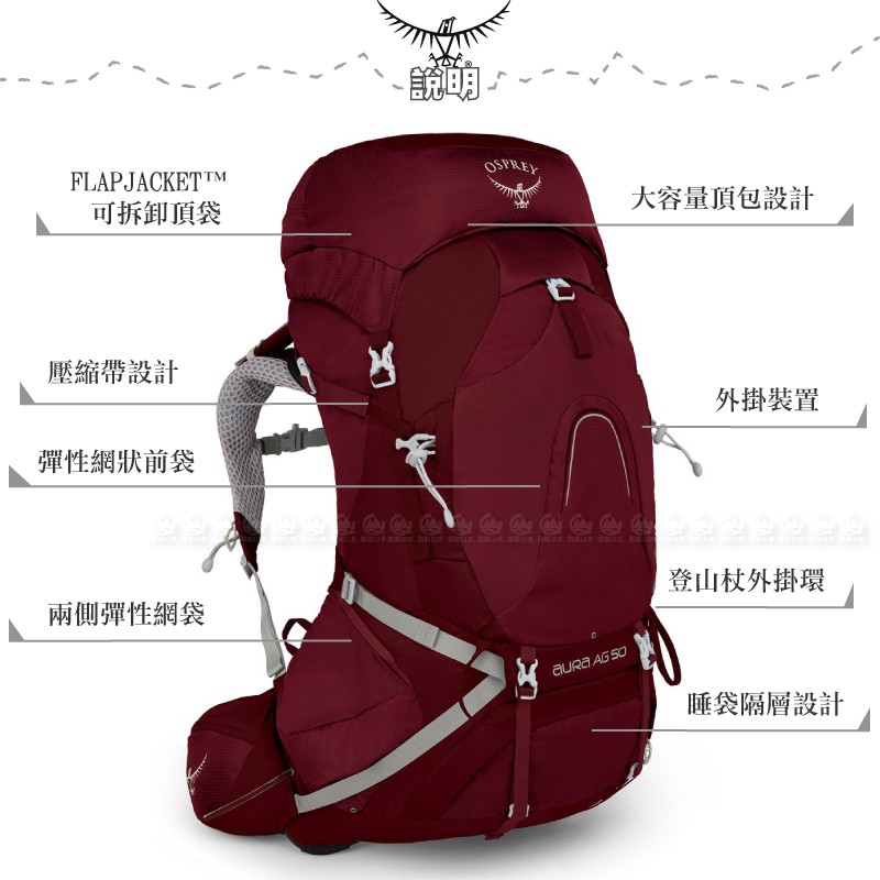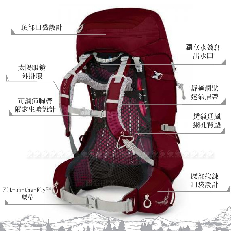 零碼出清【OSPREY 美國 AURA AG 50 S 女款 登山背包《輻射紅》47L】登山包/自助旅行/悠遊山水