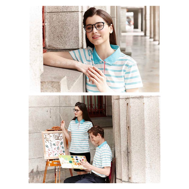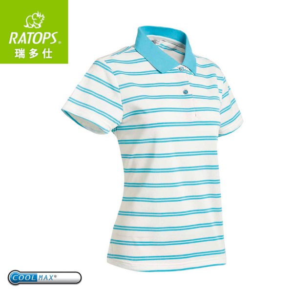 【Ratops 瑞多仕 女 Coolmax條紋POLO短袖上衣《淺湖綠領》】DB8786/POLO衫/休閒上衣/悠遊山水