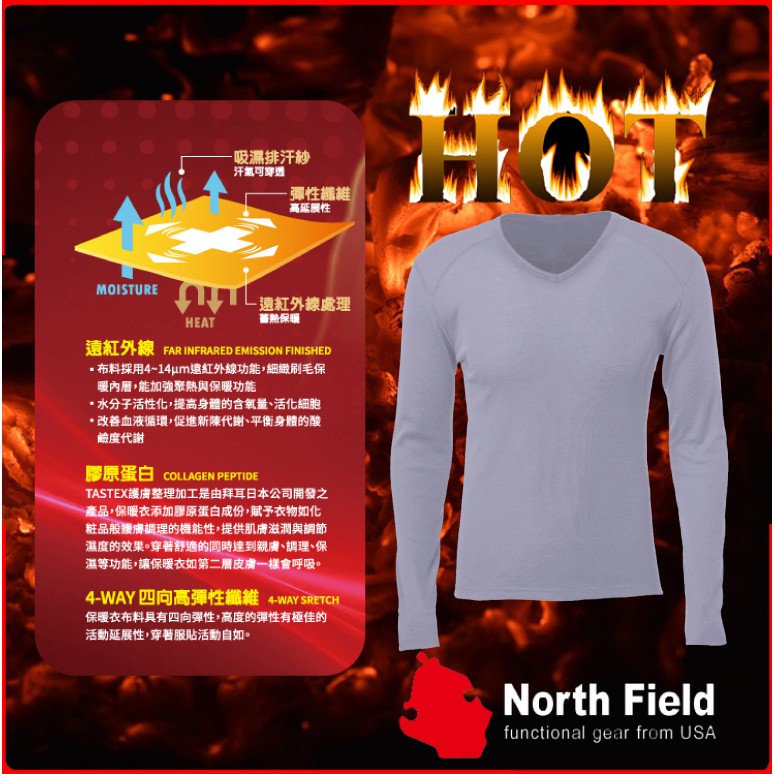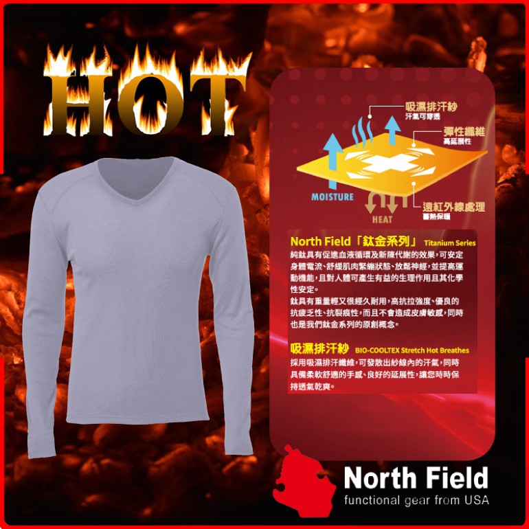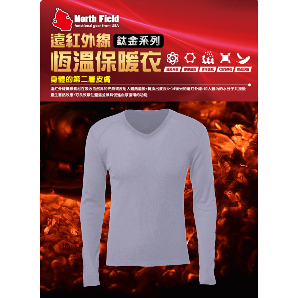 【North Field美國 男 V領遠外線內衣《鈦灰》】保暖衣/發熱衣/膠原蛋白/吸濕排汗/親膚/第二層肌膚/悠遊山水