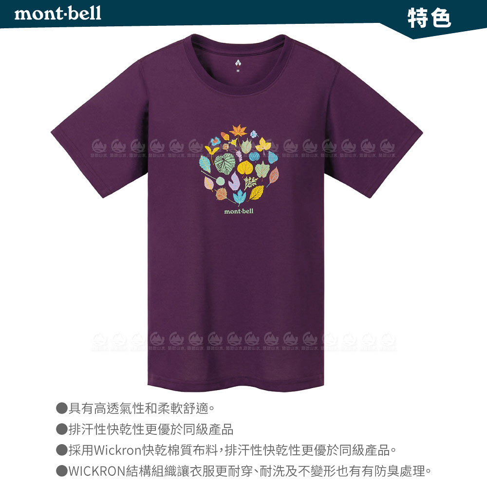 【Mont-Bell 日本 女 WIC.T 山木葉短袖排汗T恤《紫紅》】1114182/運動上衣/快乾透氣