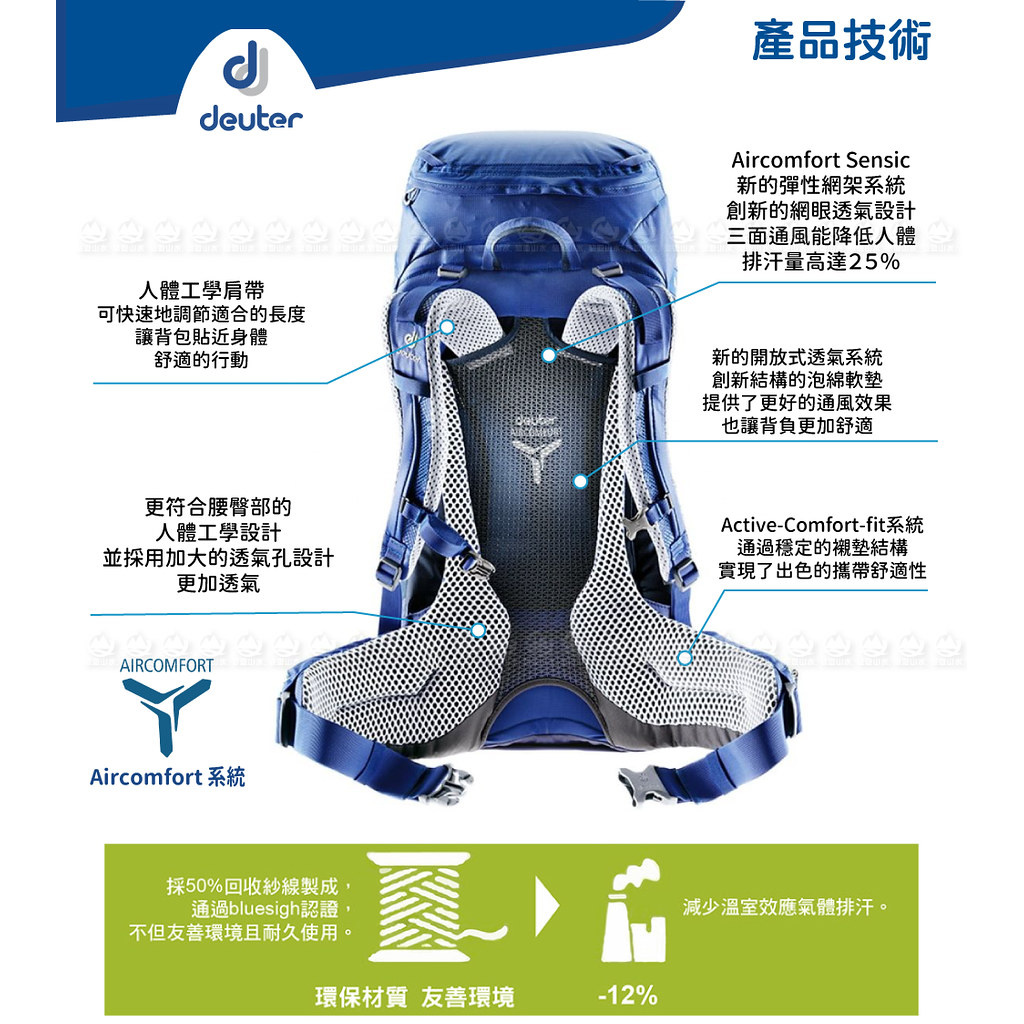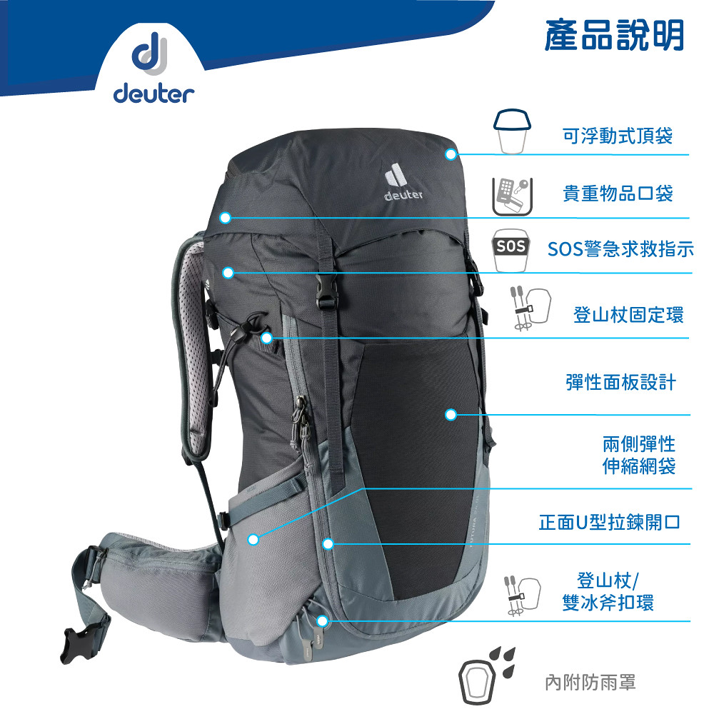 【Deuter 德國 FUTURA 24SL 透氣網架背包《黑/水藍》】3400521/輕量登山包/自行車背包/悠遊山水