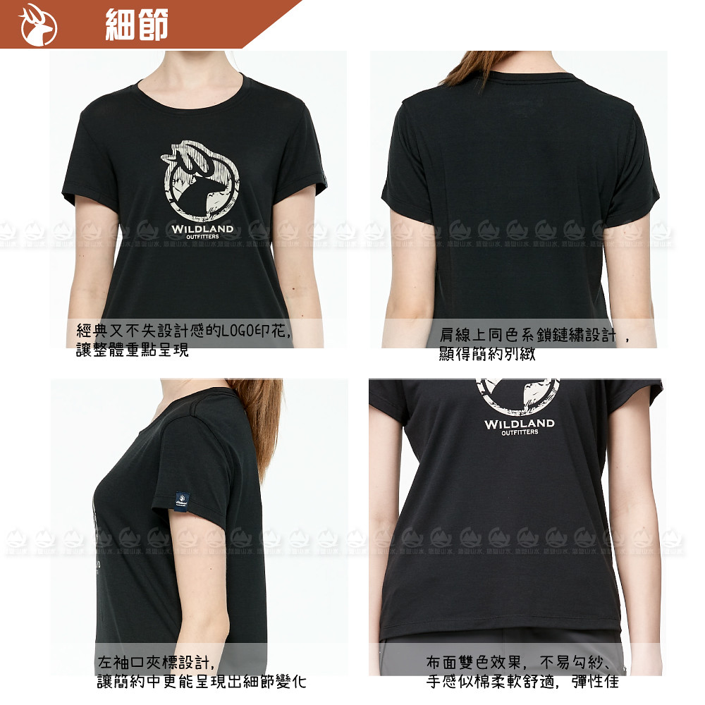 【Wildland 荒野 女 彈性LOGO印花圓領上衣《黑》】0A91603/短袖/圓領T/運動衣/休閒衫/悠遊山水