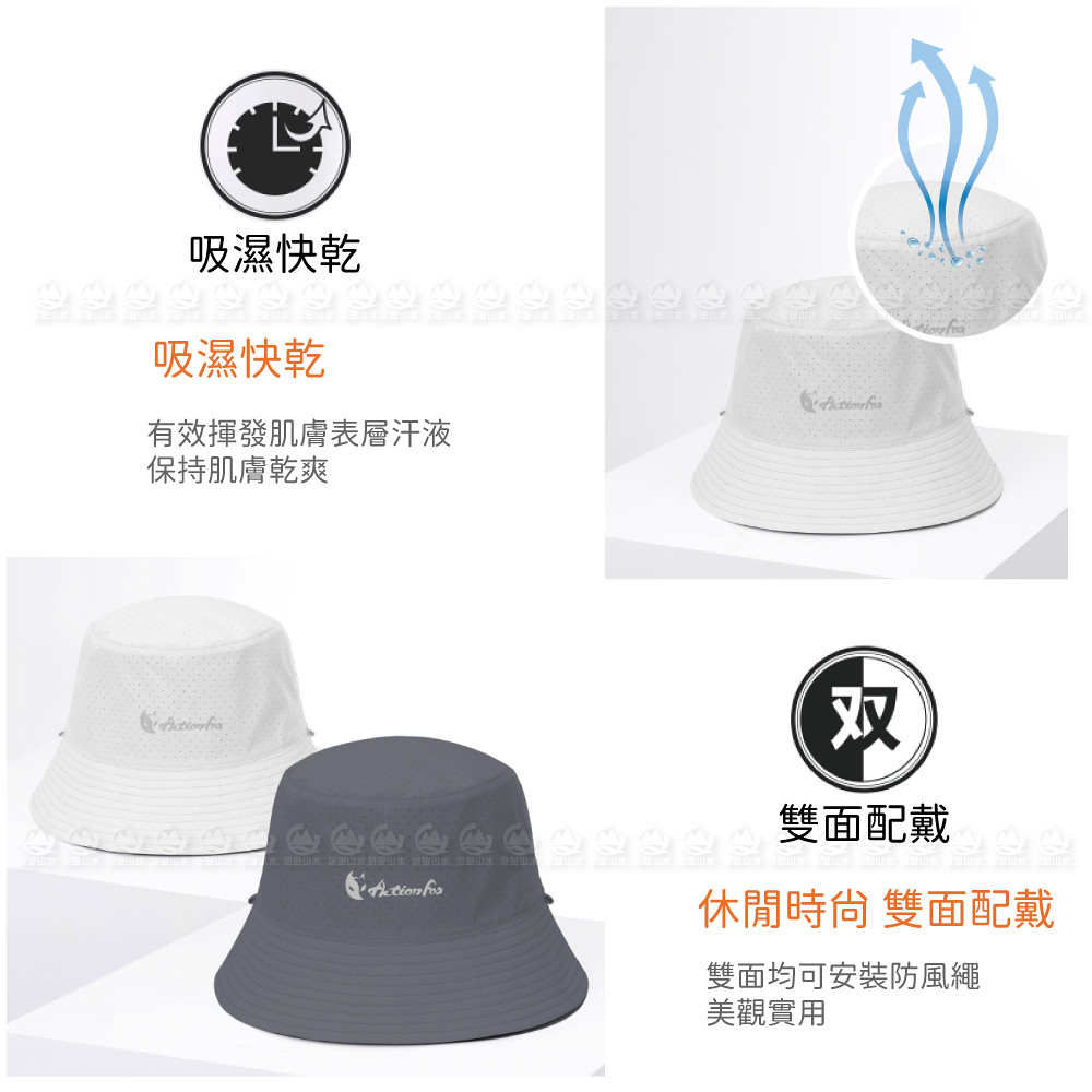 【ActionFox 挪威 抗UV快乾雙面遮陽帽《黑/淺灰》】631-5427/漁夫帽/防曬帽/休閒帽