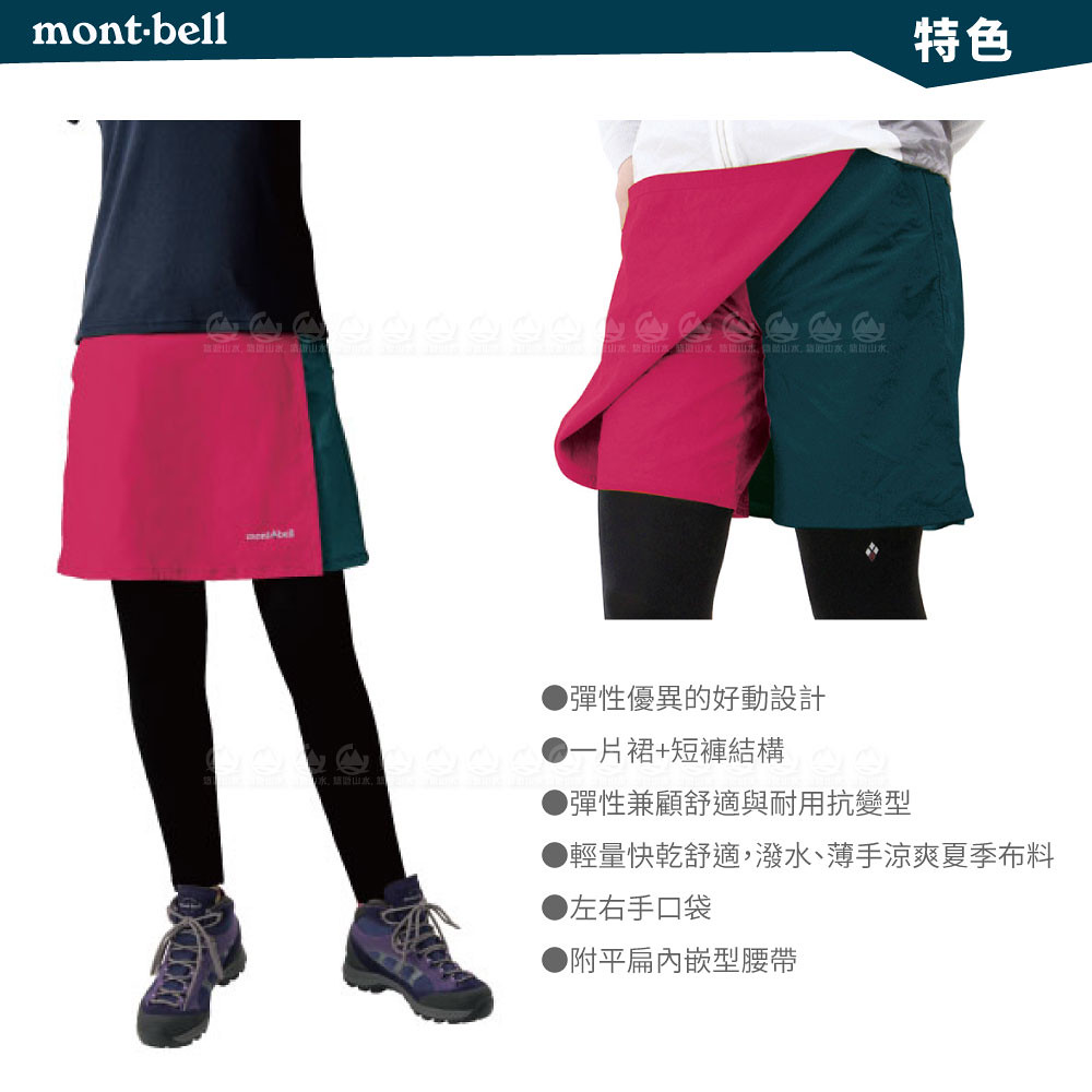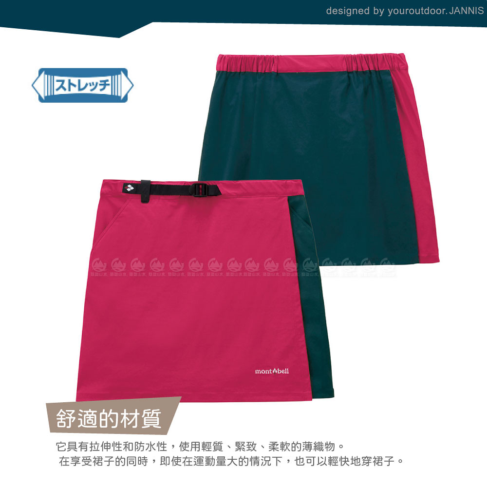 【Mont-Bell 日本 女 STRETCH OD WRAP 褲裙 《鮮紅/墨綠》】1105583/短裙/快乾排汗
