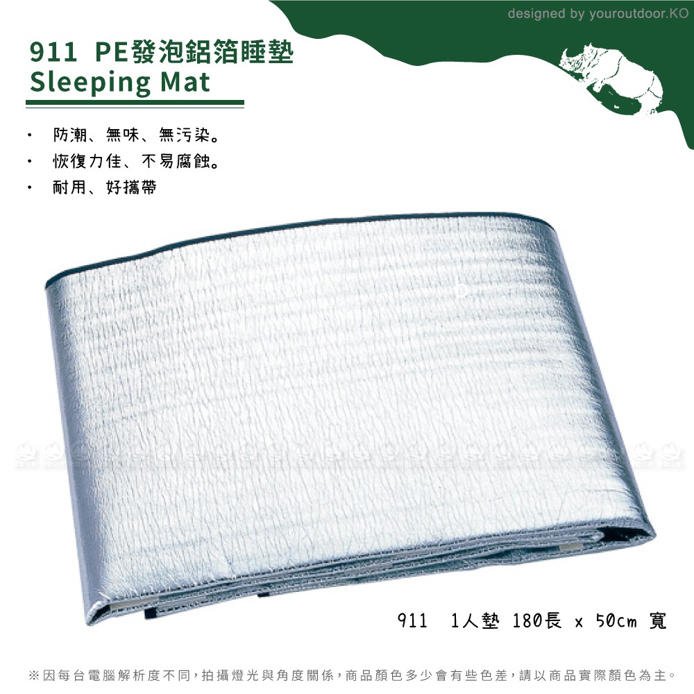 【RHINO 犀牛 1人 PE發泡鋁箔睡墊】911/鋁箔墊/防潮墊/露營墊/野餐墊/地墊/睡墊/悠遊山水