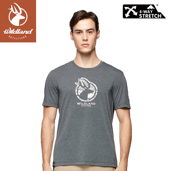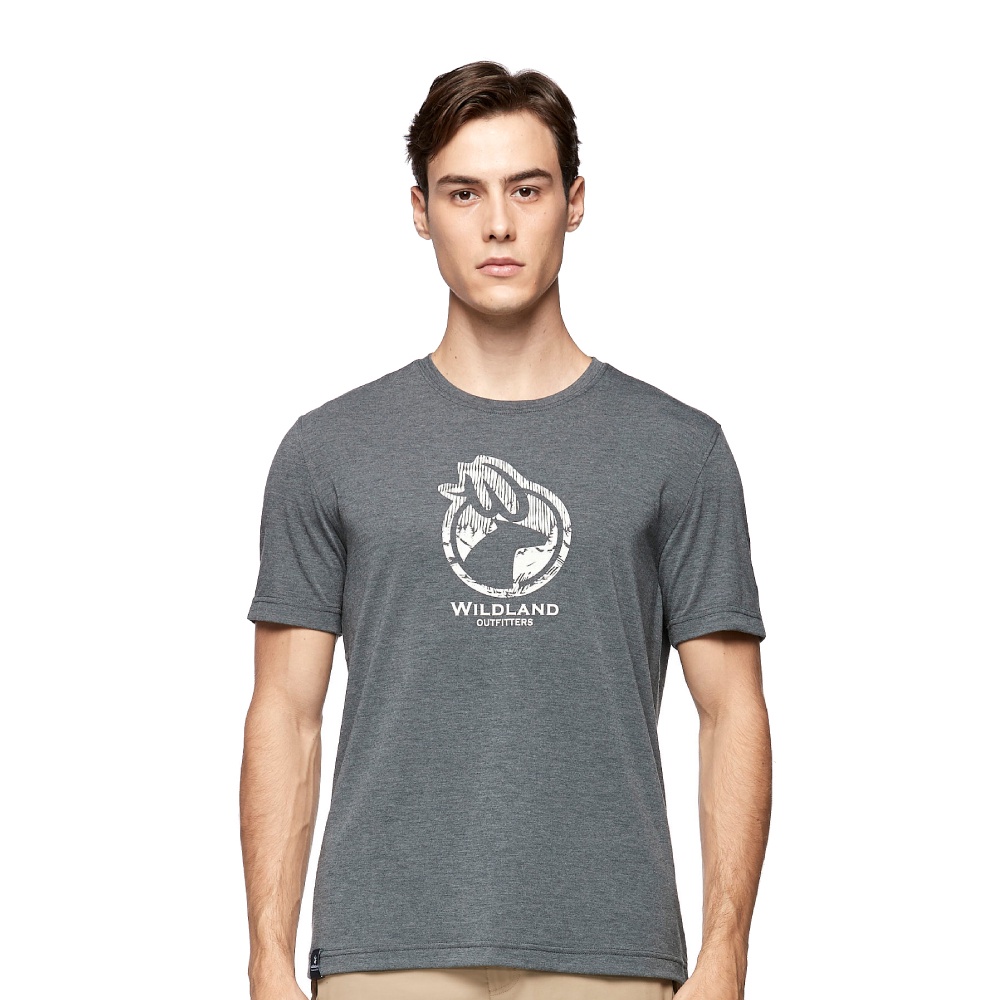 【Wildland 荒野 男 彈性LOGO印花圓領上衣《深灰》】0A81606/短袖/圓領T/運動衣/休閒衫/悠遊山水