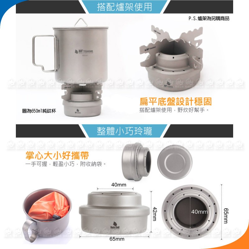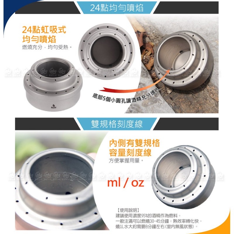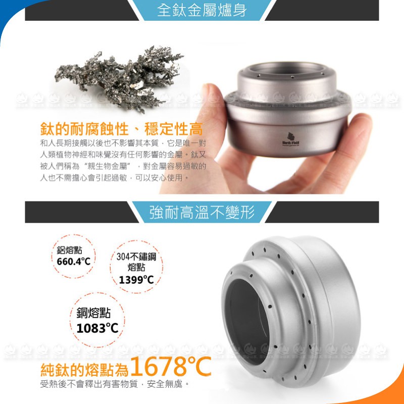 【North Field 美國 BBT極輕加厚純鈦酒精爐/柴火爐(附袋/僅47g)】T012R/登山露營/口袋/悠遊山水