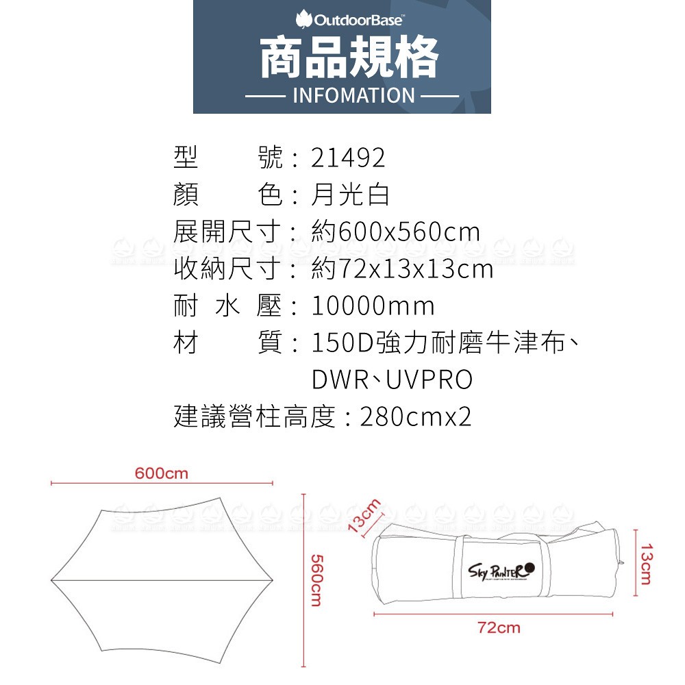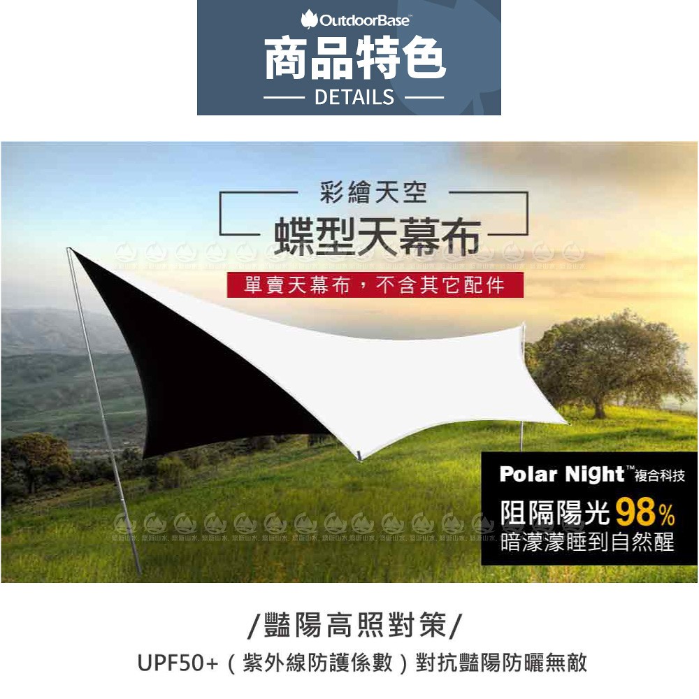 【OutdoorBase 彩繪天空蝶型天幕《月光白》】21492/天幕帳/遮陽帳/客廳帳/露營/悠遊山水