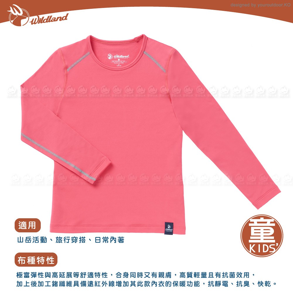 【Wildland 荒野 女童 輕量鍺纖維親膚保暖衣《蜜粉紅》】W2669/機能衣/衛生衣/內搭/悠遊山水