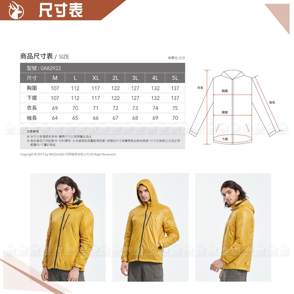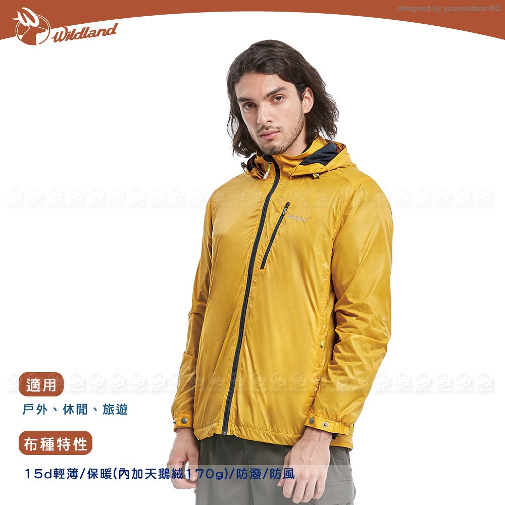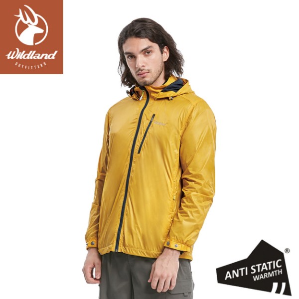 【Wildland 荒野 男 15D天鵝絨防風保暖外套《藤黃》】0A82922/連帽外套/風衣/運動外套/悠遊山水