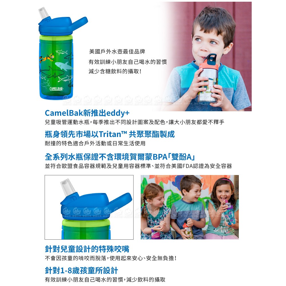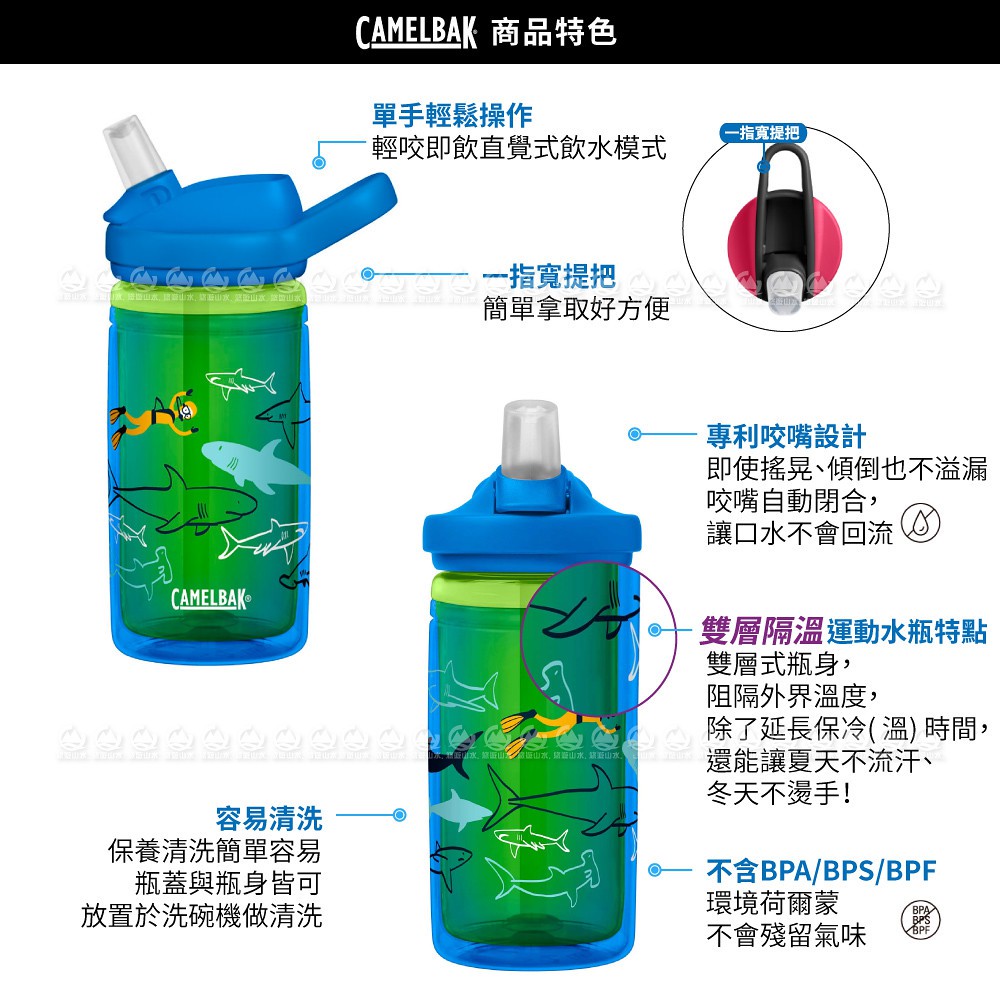 【CamelBak 美國 400ml eddy+兒童吸管雙管隔溫運動水瓶《潛水鯊魚》】2283401040/兒/悠遊山水