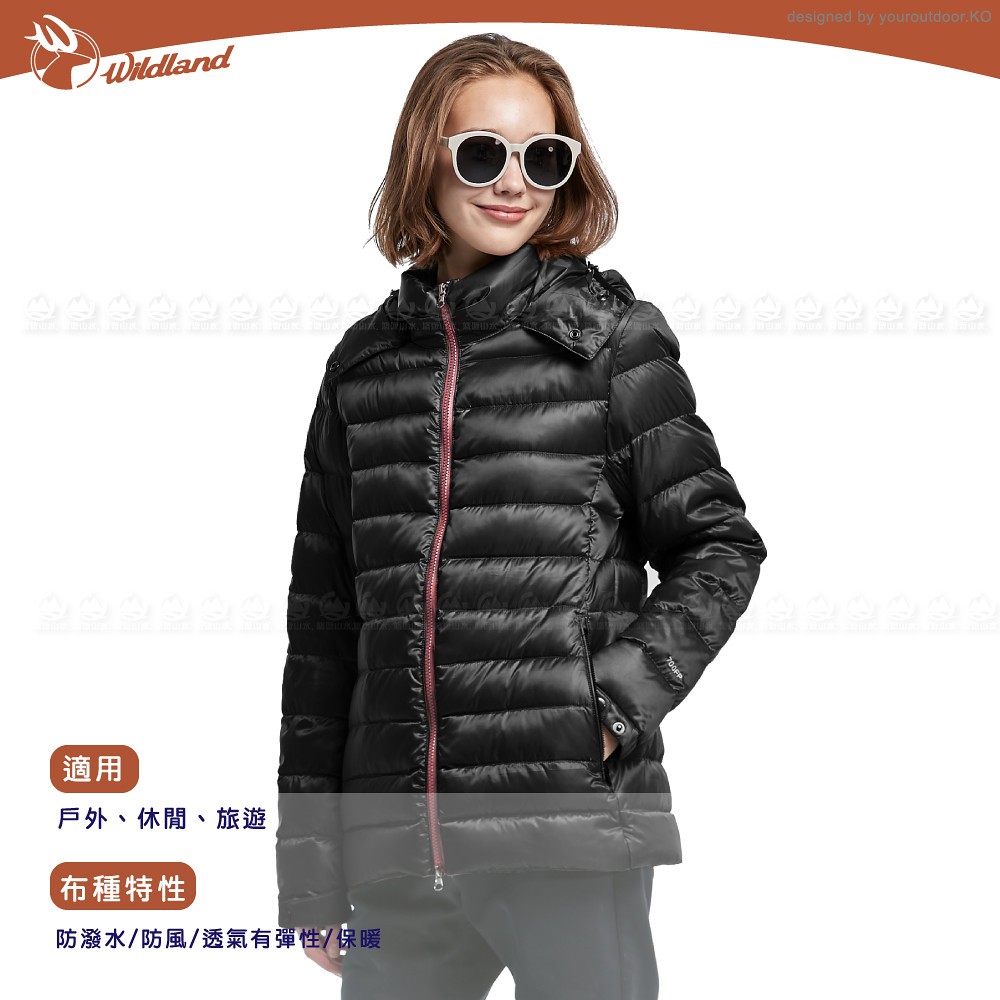 【Wildland 荒野 女 700FP 可回溯羽絨外套《黑》】0A82101/輕羽絨外套/保暖外套/連帽外套/悠遊山水