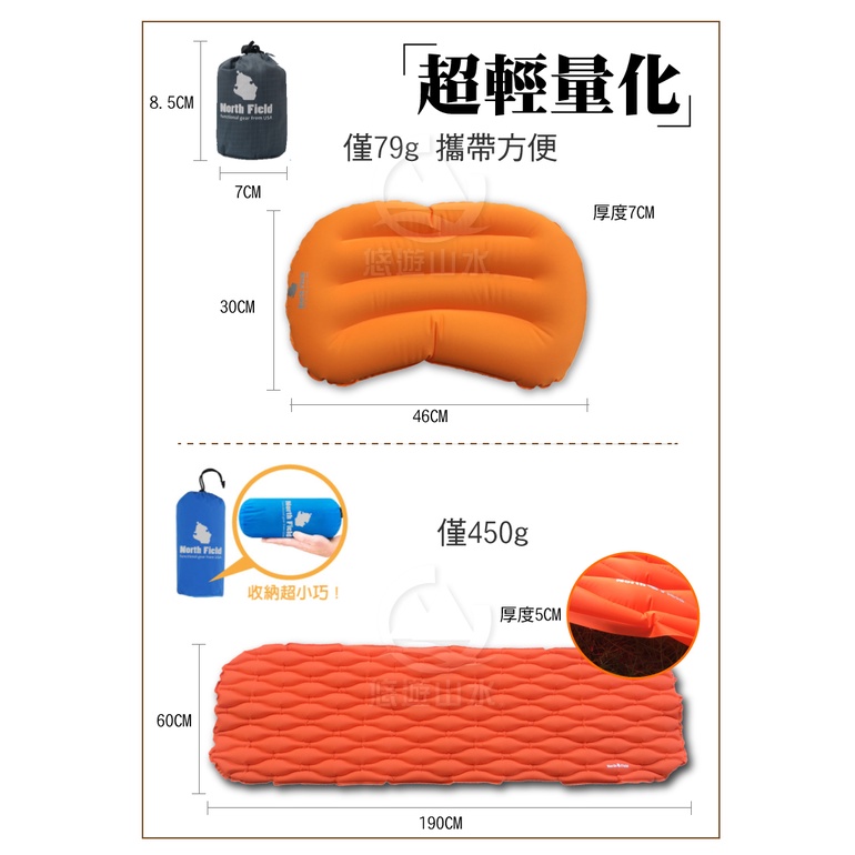 【美國 North Field 專利 V2 超輕加大款快速充氣睡墊+充氣枕】登山/露營/旅行/輕量/超值套組/悠遊山水