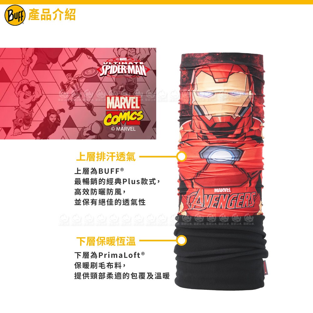 【BUFF 西班牙 青少年超級英雄 保暖頭巾 Plus《鋼鐵人》】124104/圍脖/帽子/口罩/圍巾/快乾透/悠遊山水