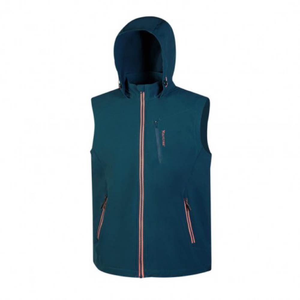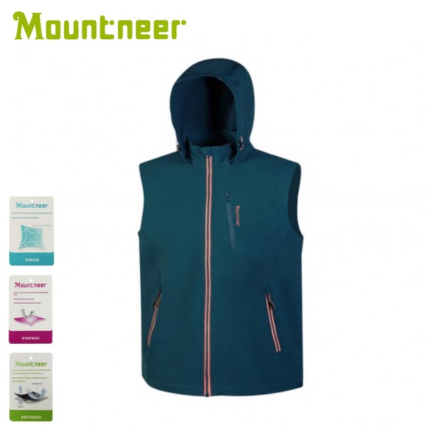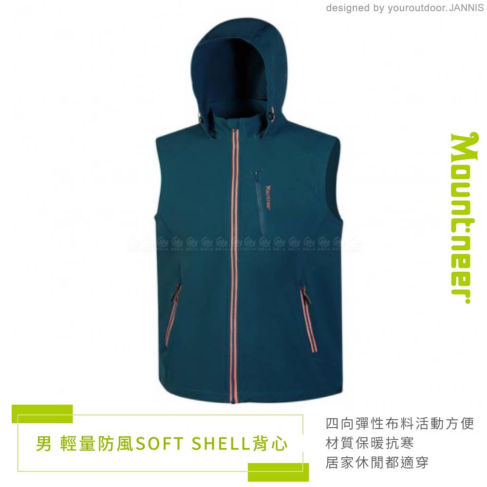【Mountneer 山林 男 輕量防風SOFT SHELL背心《海藍》】32V01/保暖背心/休閒背心/連帽背心