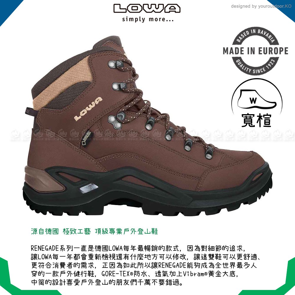 LOWA 德國 男 Renegade GTX Mid 中筒多功能健行鞋《咖啡棕》寬楦/LW310968/登山鞋/悠遊山水