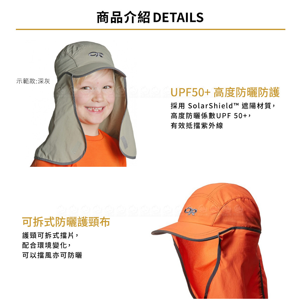 【Outdoor Research 美國 兒童款 抗UV透氣護頸《橘》】243434/防曬後遮/棒球帽/遮陽帽