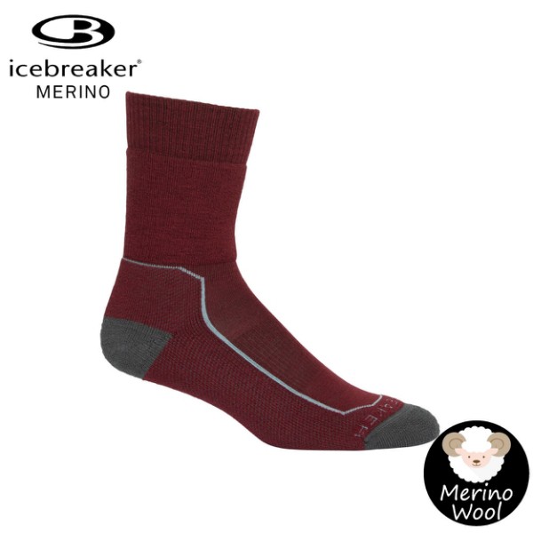 【Icebreaker 女 中筒中毛圈健行襪(+)《酒紅》】105097/快乾機能襪/排汗襪/羊毛襪/悠遊山水