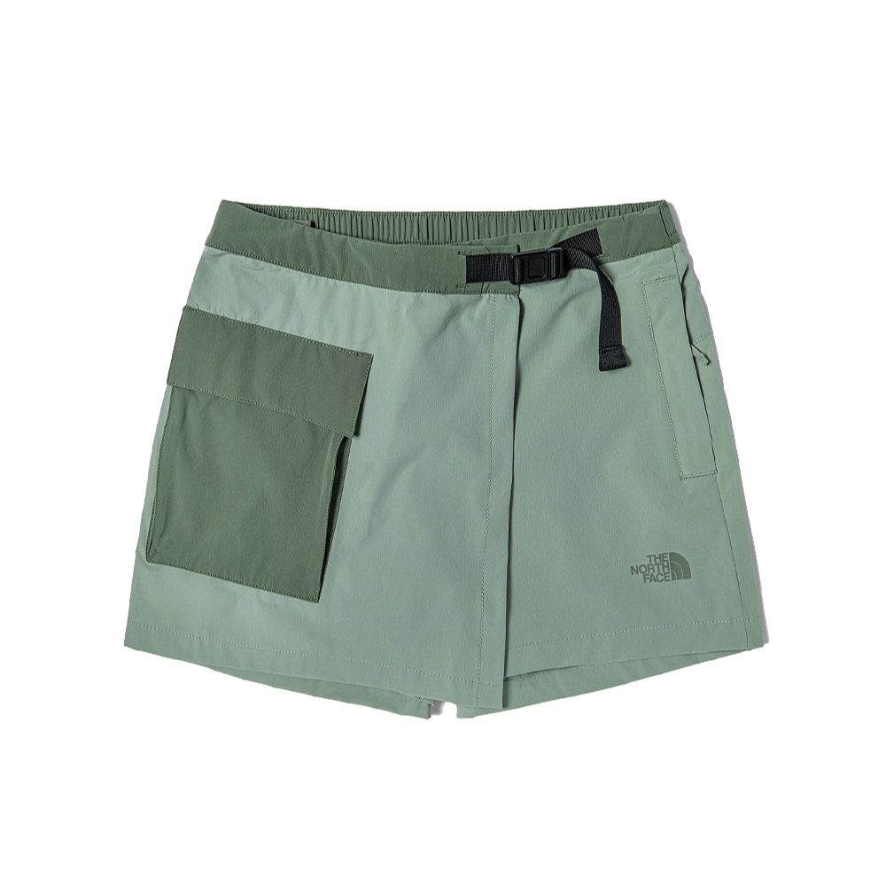 【The North Face 女 褲裙《灰綠》】4UCH/休閒短褲/褲裙/運動短褲