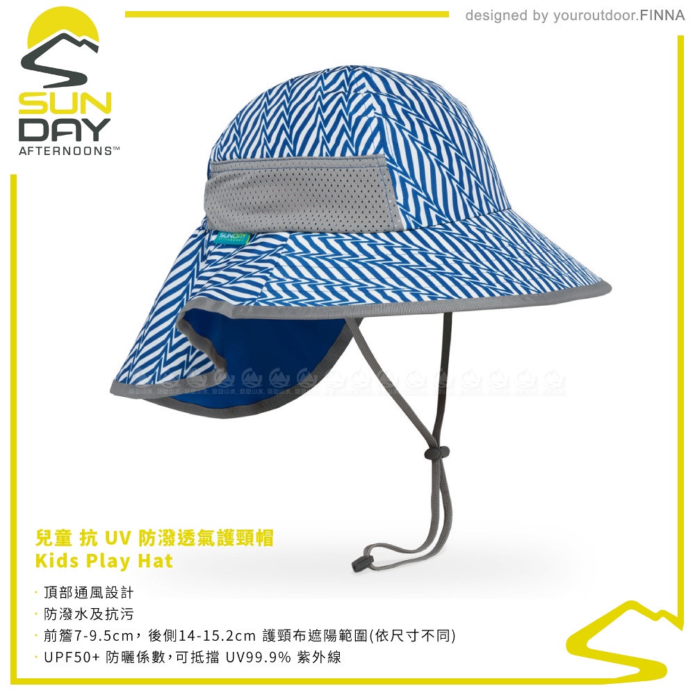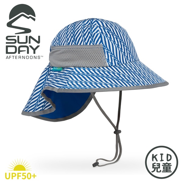 【Sunday Afternoons 美國 童 抗UV防潑透氣護頸帽《藍色幾何折線》】SAS2D01061B/休閒帽