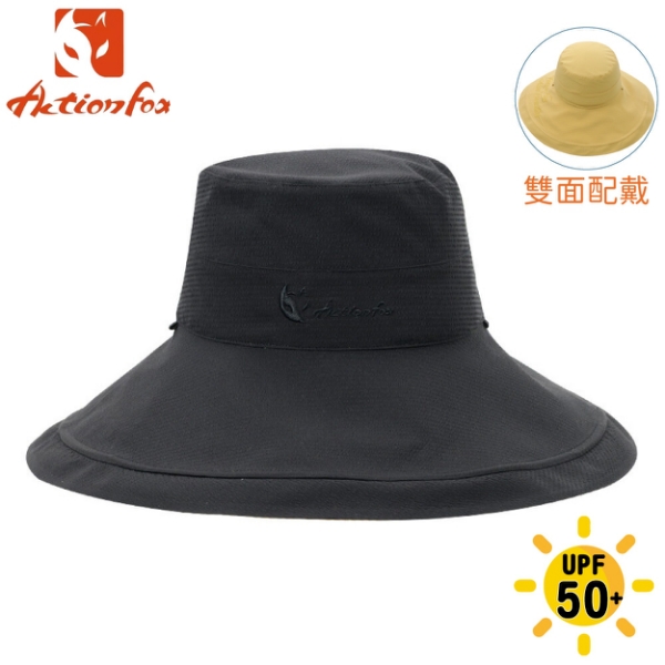【ActionFox 挪威 女 抗UV大帽沿雙面遮陽帽《黑/芥末黃》】631-5438/圓盤帽/防曬帽/透氣/登山/園藝