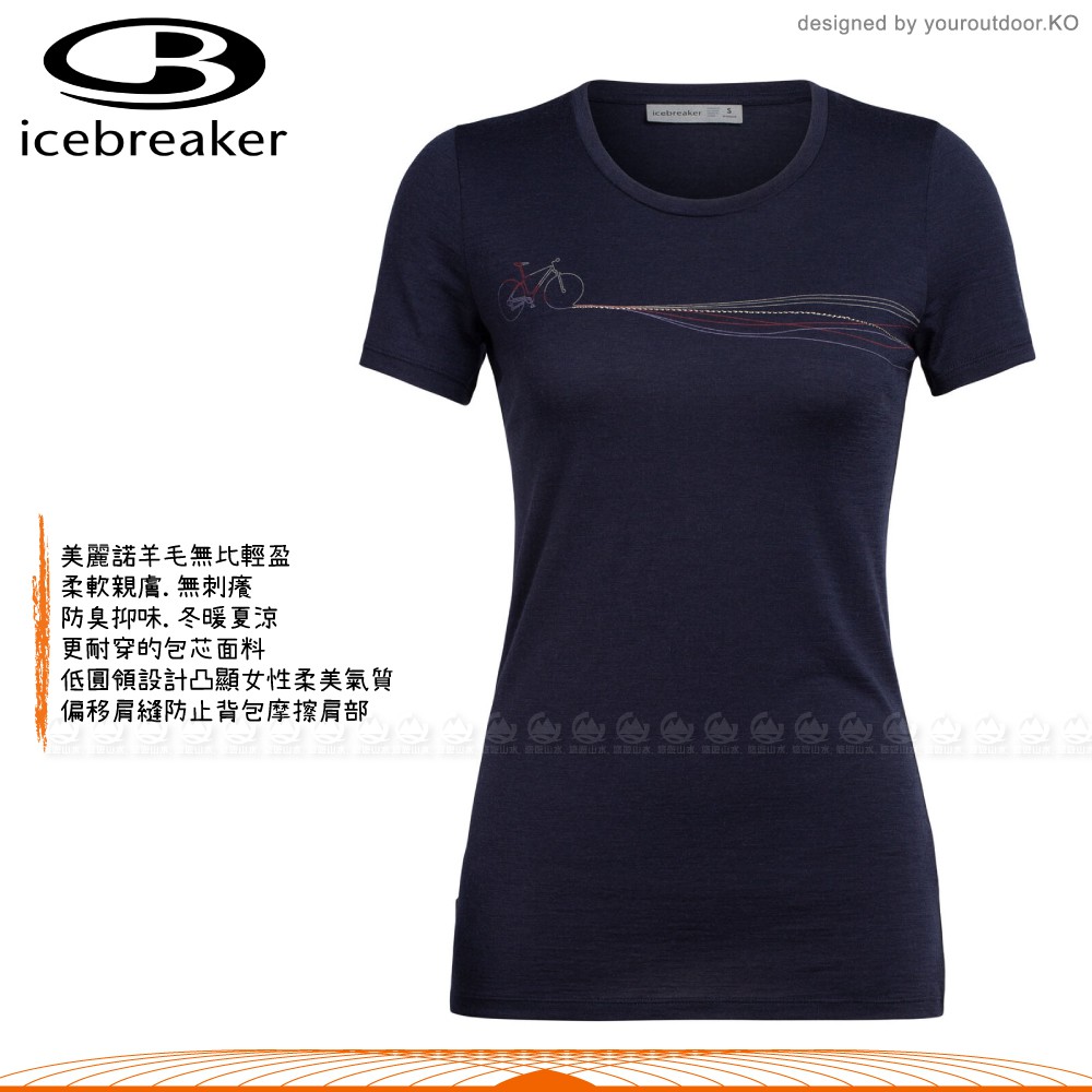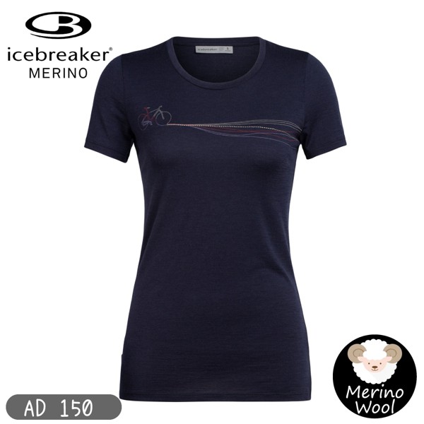 Icebreaker 女 Tech Lite圓領短袖上衣AD150單車路徑《深藍》/104997/快乾機能服/悠遊山水