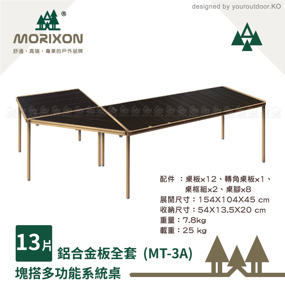 【MORIXON 塊搭 13片塊搭鋁合金板桌全套】MT-3A/鋁桌/戶外桌/露營桌/摺疊桌/多功能桌/悠遊山水