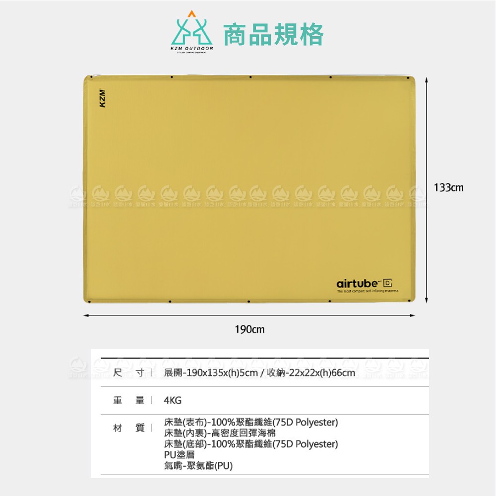 【KAZMI 韓國 KZM 自動充氣雙人床墊《卡其色》】K20T3M002/露營床墊/睡墊/休閒床墊/悠遊山水