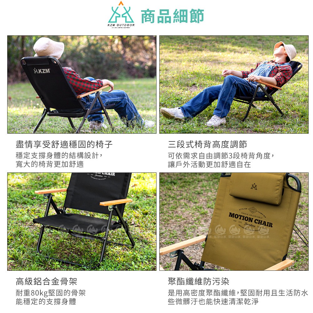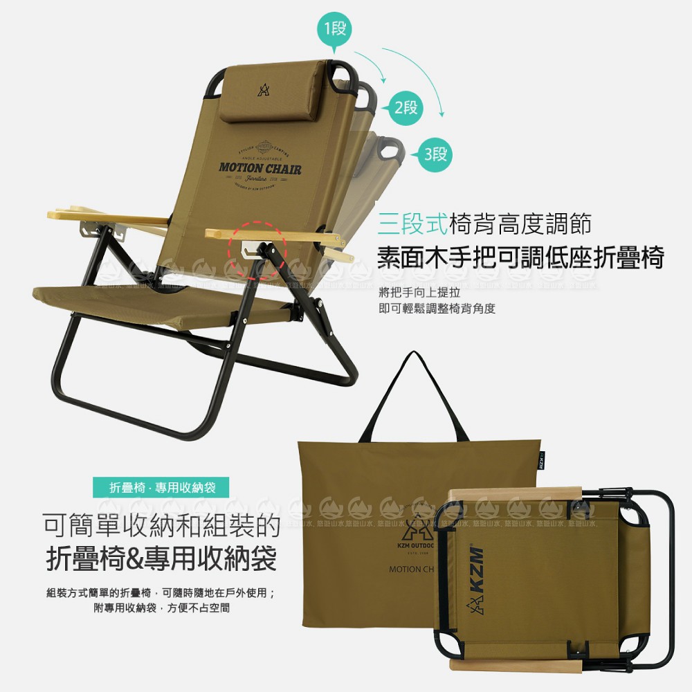 【KAZMI 韓國 KZM 素面木把手可調低坐折疊椅《卡其色》】K20T1C0012/露營椅/休閒椅/悠遊山水