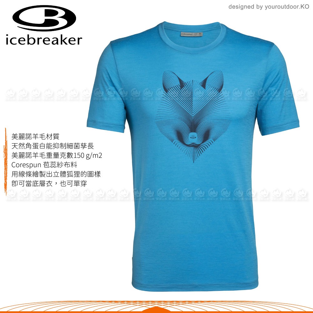【Icebreaker 男 Tech Lite 圓短T AD150北極冰狐《水藍》】105439/羊毛排汗衫//悠遊山水