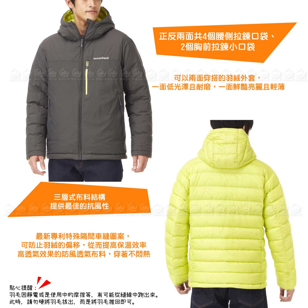 Mont-Bell 日本 男 雙面羽絨外套《黑/灰紫》/1101492/超輕防潑水/禦寒夾克/登山滑雪賞雪/悠遊山水