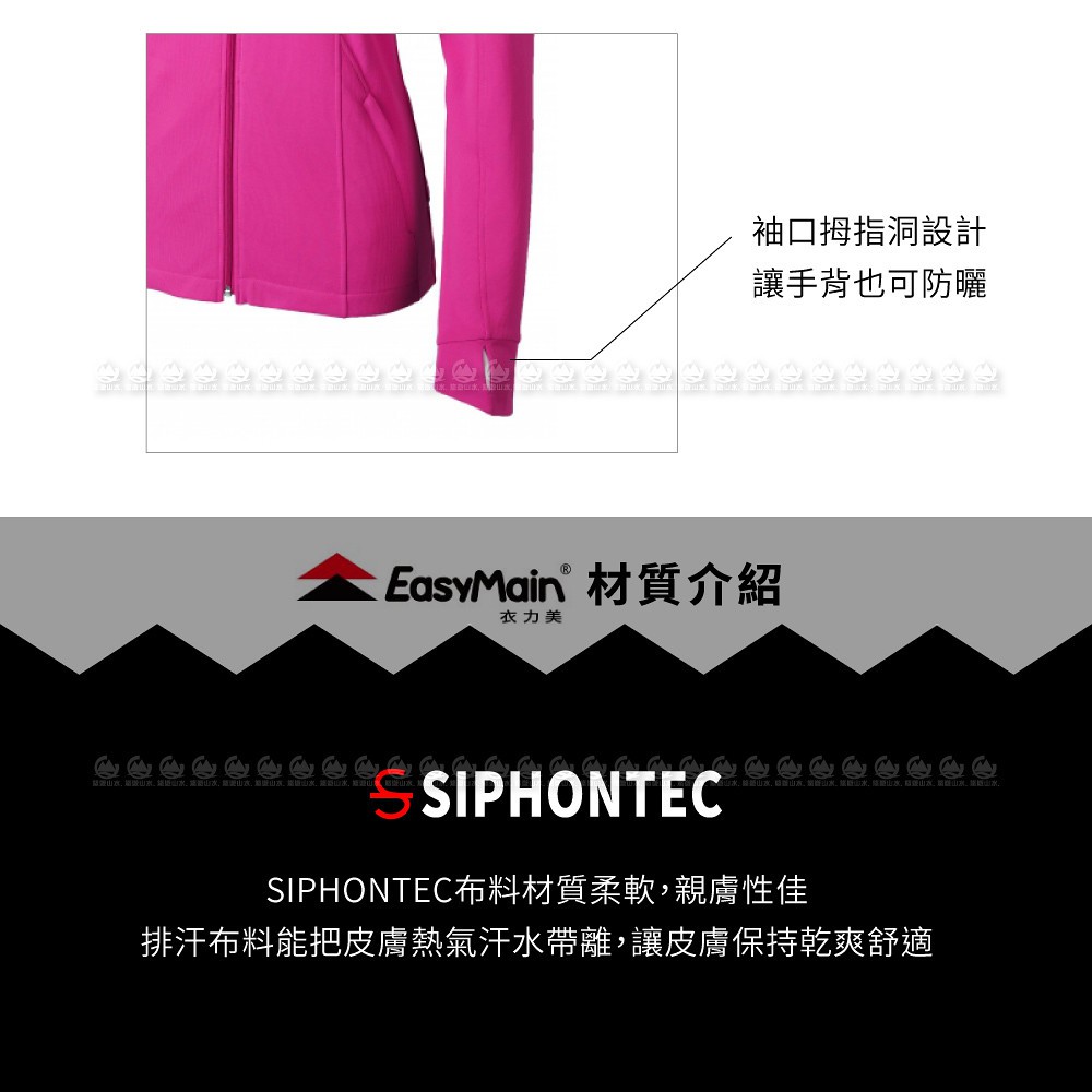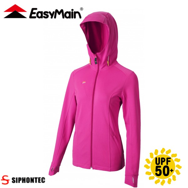 【EasyMain 衣力美 女 永久防曬 連帽排汗衣《紫紅》】CE20032/防曬外套/薄外套/悠遊山水