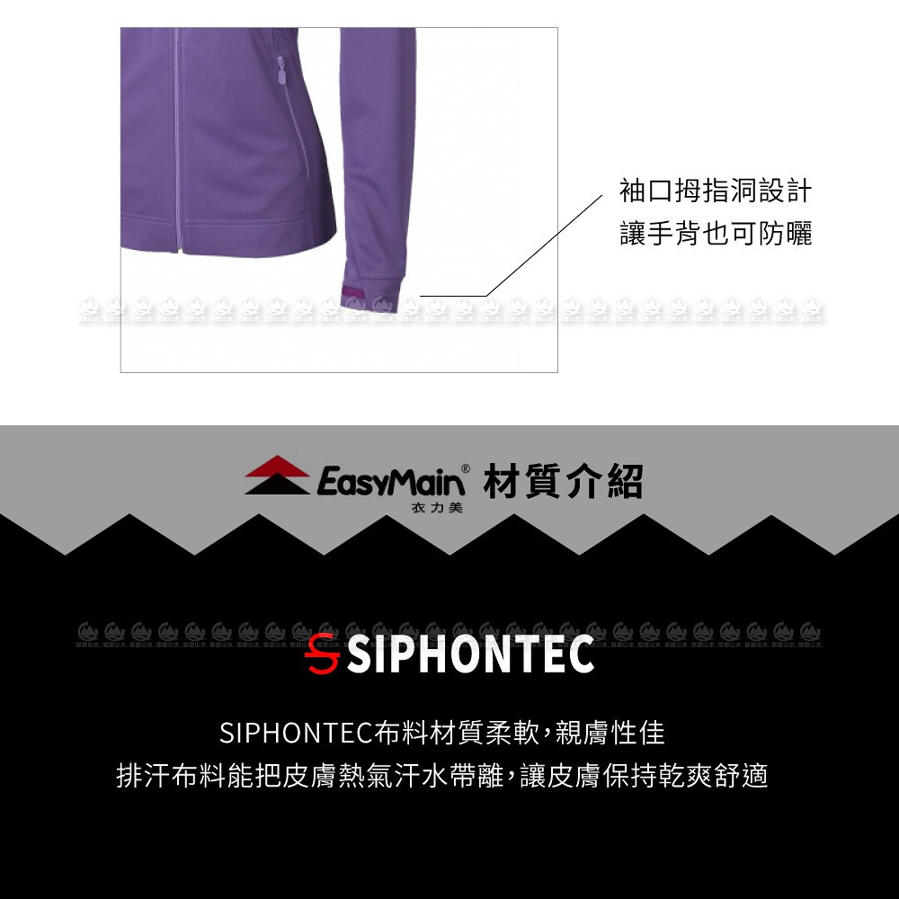 【EasyMain 衣力美 女 永久防曬 連帽排汗衣《深紫藍》】CE20034/防曬外套/薄外套/悠遊山水