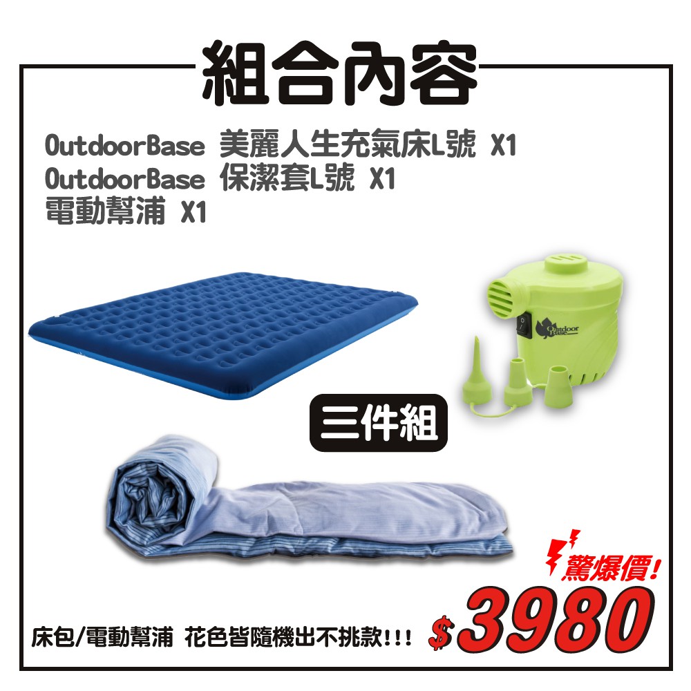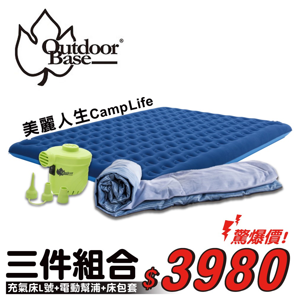 《超值組合》OutdoorBase 美麗人生充氣床L號+保潔床包套+強力電動幫浦/露營/登山/寢具/悠遊山水