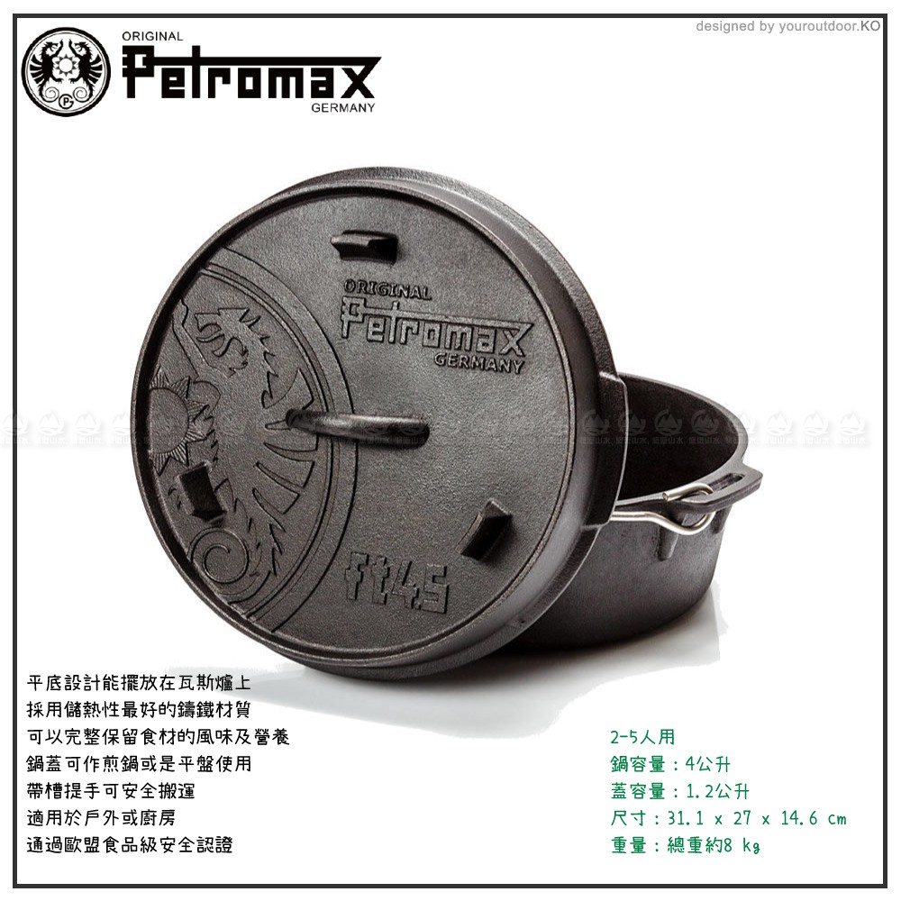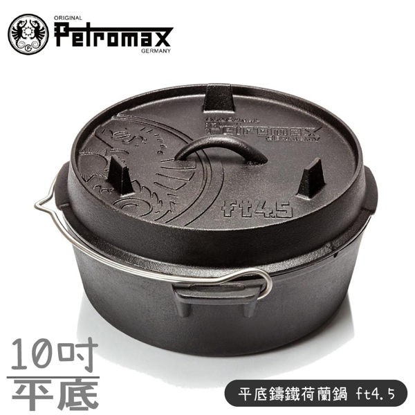 Petromax 德國 平底鑄鐵荷蘭鍋 30cm (4.5ft)/ft4.5-t/鐵鍋/燉鍋/上蓋煎盤/悠遊山水