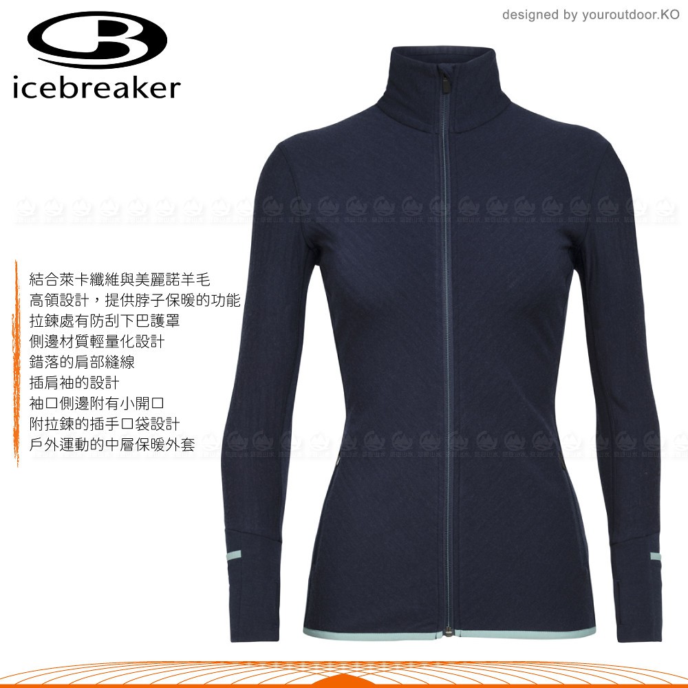 【Icebreaker 女 DESCENDER 刷毛保暖外套 GT240《深藍》】103900/保暖羊毛夾克//悠遊山水