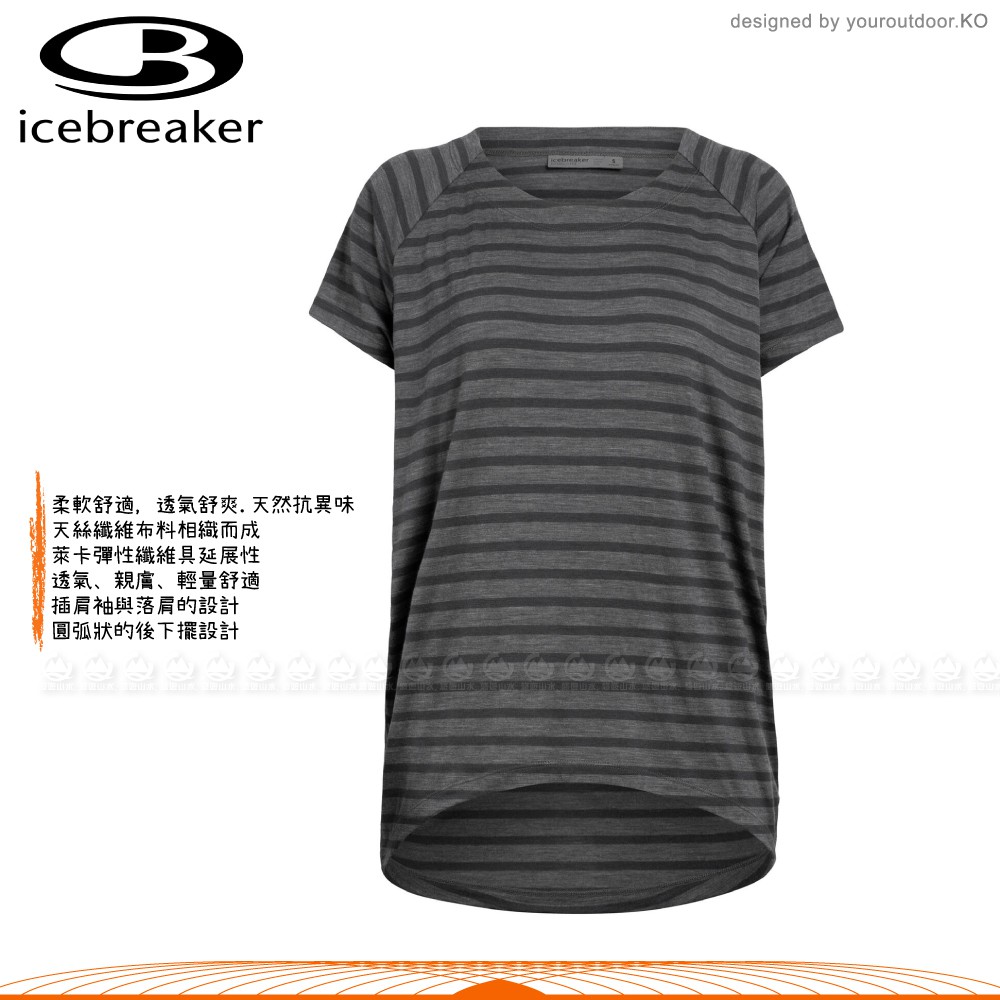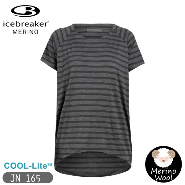 Icebreaker 女 Elowen COOL-LITE圓領短袖上衣JN165《黑/灰條紋》/105026/悠遊山水