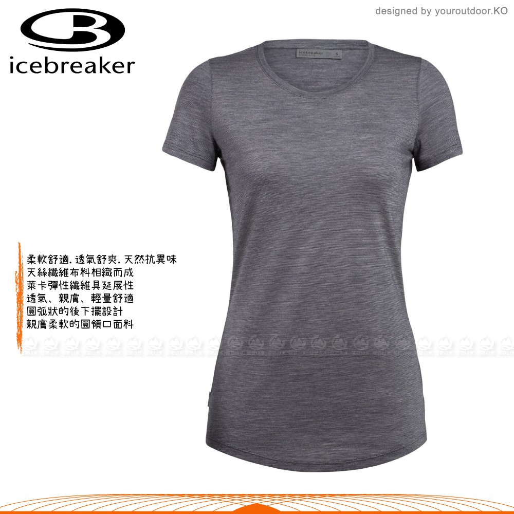 【Icebreaker 女 COOL-LITE U領短袖上衣JN130《細灰條紋》】104680/快乾機能服//悠遊山水