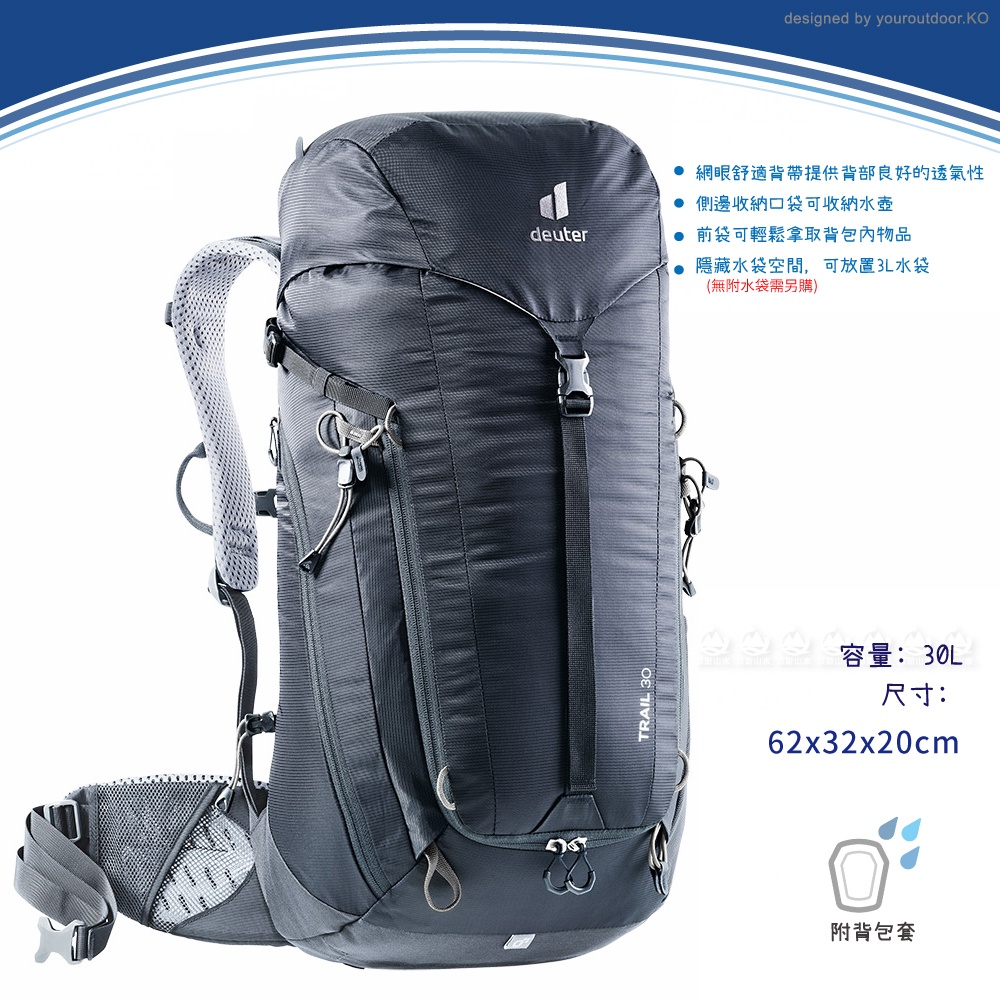 【Deuter 德國 TRAIL 30L 輕量拔熱透氣背包《黑》】3440521/雙肩後背包/登山包/戶外旅遊/悠遊山水