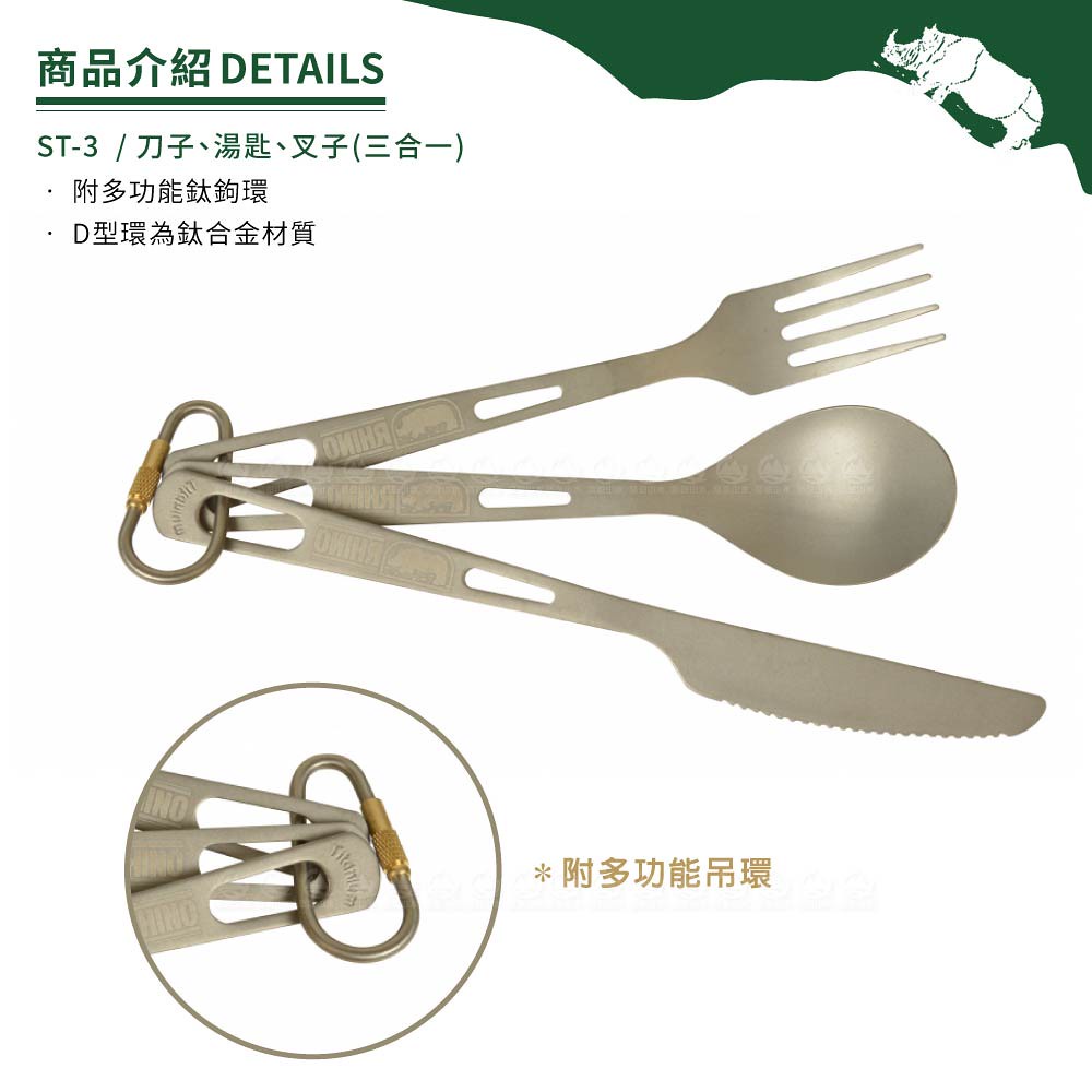 【RHINO 犀牛 鈦合金刀叉匙(3合1)組合】KT-23/登山/露營/ 個人隨身餐具