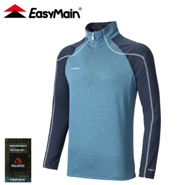 【EasyMain 衣力美 男 快乾保暖透氣防臭休閒服《深寶藍》】SE20065/保暖衣/長袖/立領衫/悠遊山水