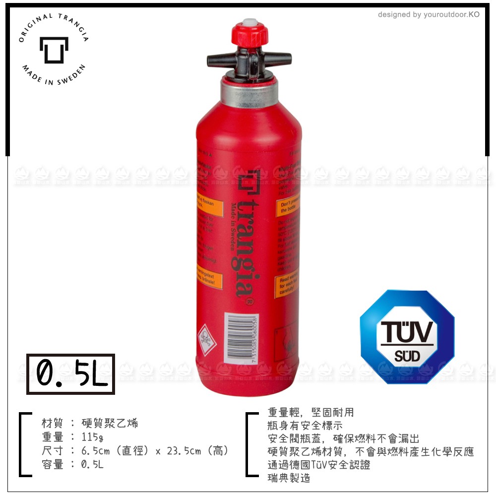【Trangia 瑞典 Fuel Bottle 0.5L 燃料瓶《經典紅》】506005/汽油瓶/燃油罐/汽化/悠遊山水