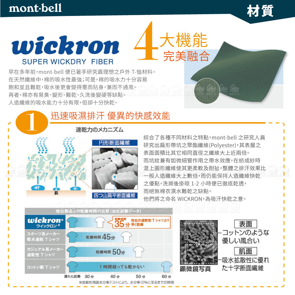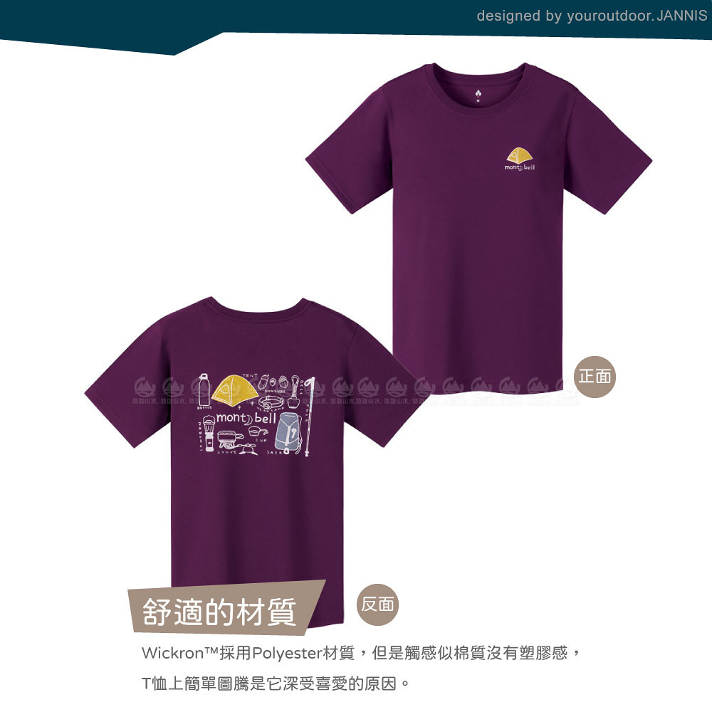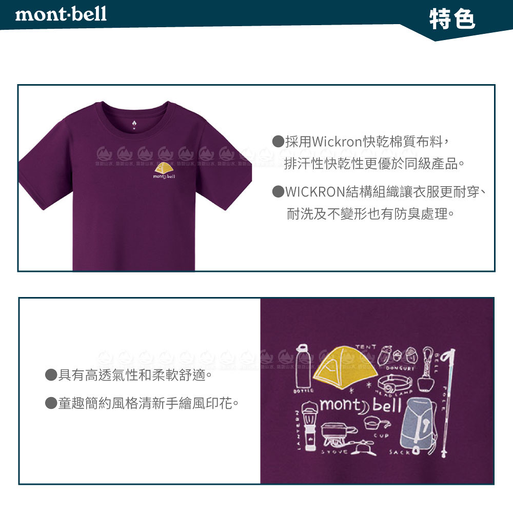 【Mont-Bell 日本 女 WIC.T W'S山的道具短袖排汗T恤《紫紅》】1114254/圓領衫/排汗衣