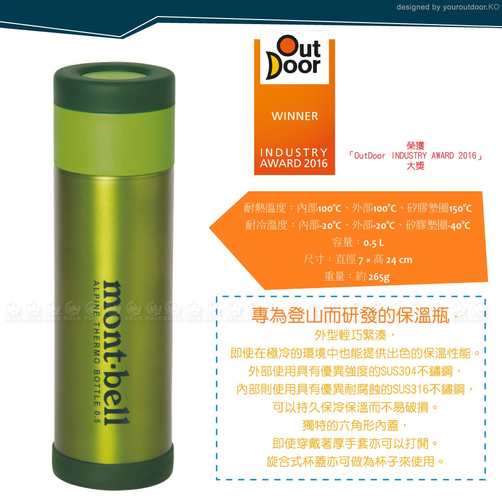 Mont-Bell 日本 Alpine Thermo 0.5L保溫瓶《梅綠》/1124617/保溫杯/單手杯/悠遊山水